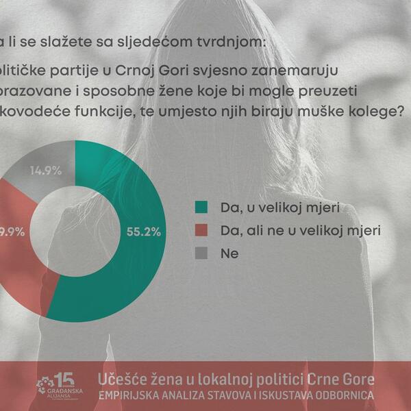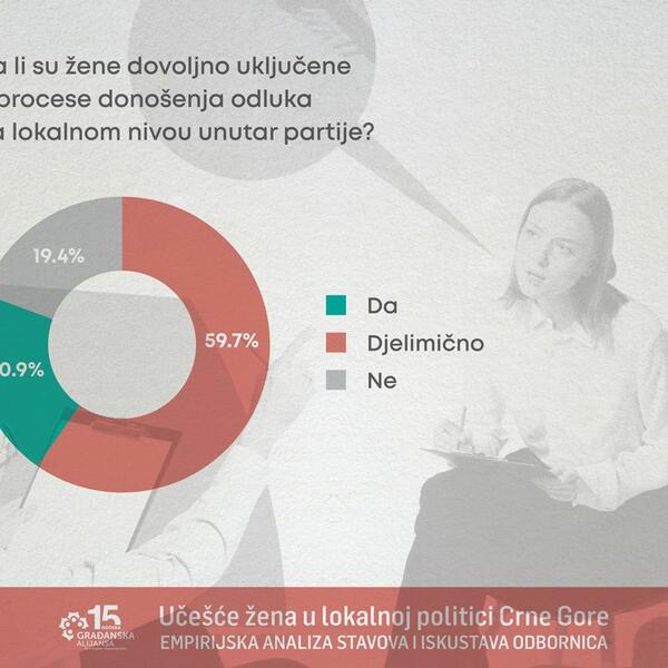 "S tim u vezi zabrinjavaju nalazi našeg istraživanja o učešću žena u lokalnoj politici u Crnoj Gori, sprovedenog u novembru 2025. godine, koji su ukazali da političarke često percipiraju da su žene prisutne u partijskim strukturama, ali ne uvijek i u krugovima u kojima se donose ključne političke odluke. Ovakvi nalazi ukazuju na jaz između formalnih mehanizama rodne ravnopravnosti i stvarnih odnosa moći unutar političkih partija, dok se istovremeno u javnom prostoru pojavljuju i nove prepreke političkom angažmanu žena", piše u saopštenju.