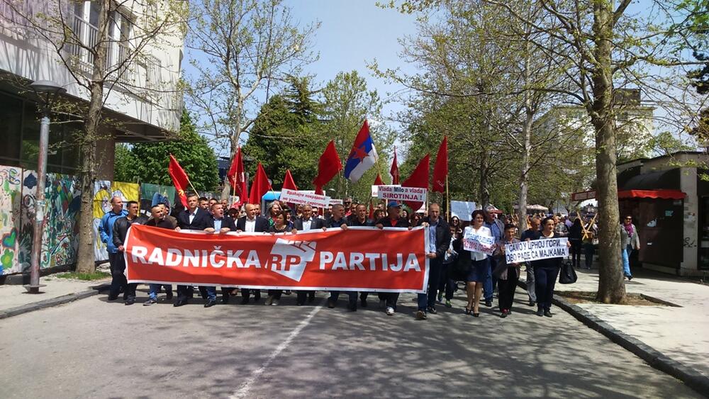 Uz trobojku, zastave Radničke partije, ali i zastave sa srpom i čekićem, uz transparente na kojima je pisalo "Ustaj omladino, ne budi omlatina", "Vlada Milo, a vlada i sirotinja", "Samo u Crnoj Gori ovo rade sa majkama" skandirajući "Milo lopove", "Grboviću lopove", "Nato ubice", oko 300 njih je prošetalo glavnom ulicom i na Trgu Slobode organizovalo protest kojim su obilježili Prvi maj, ali i dvije godine postojanja pomenute partije.