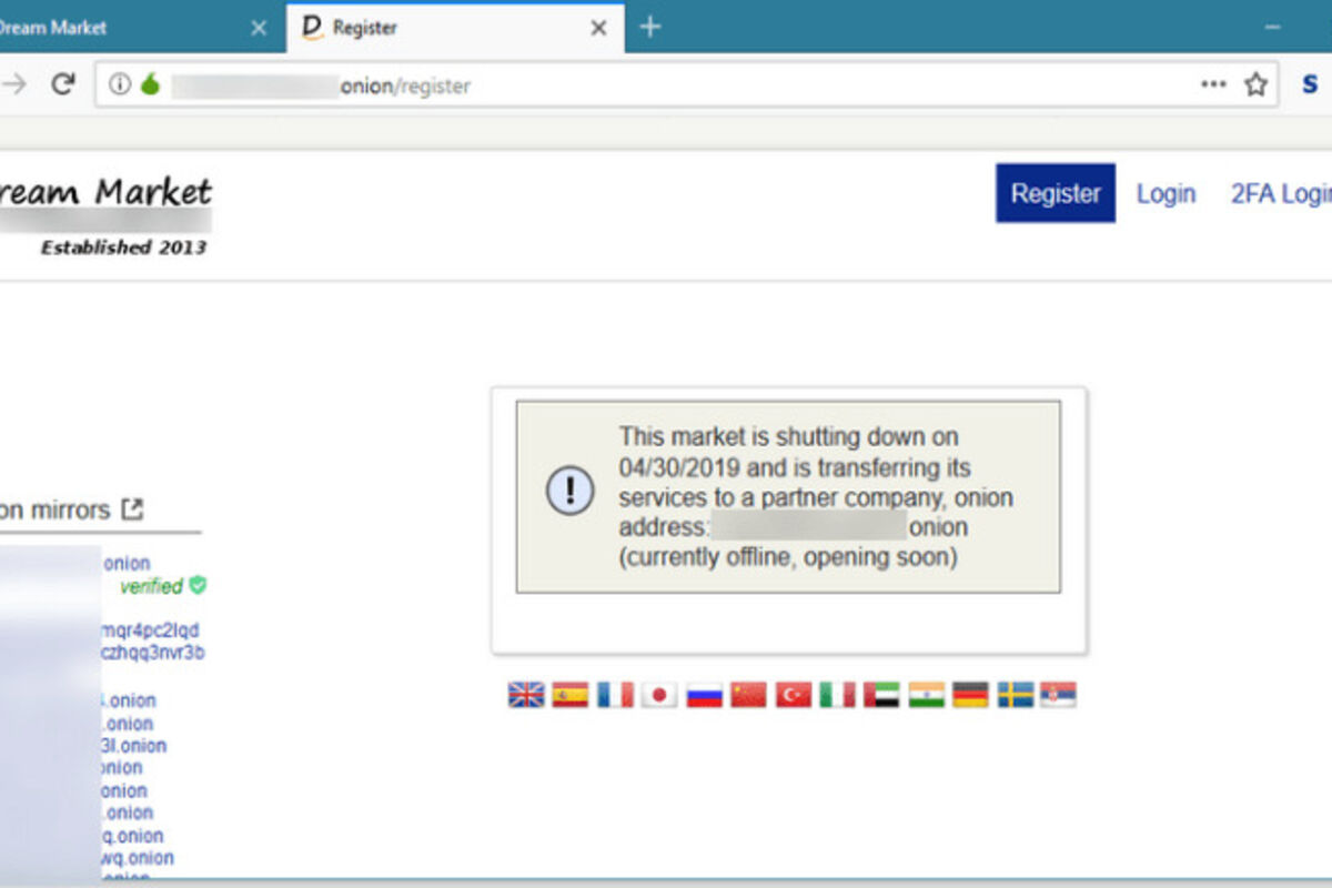 Dream Market, trenutno najveća prodavnica na dark vebu najavila je gašenje za 30. april 2019. godine. Informacija je objavljena istog dana kada su Europol, FBI i DEA objavili desetine hapšenja povezanih sa prodajom droge na dark vebu