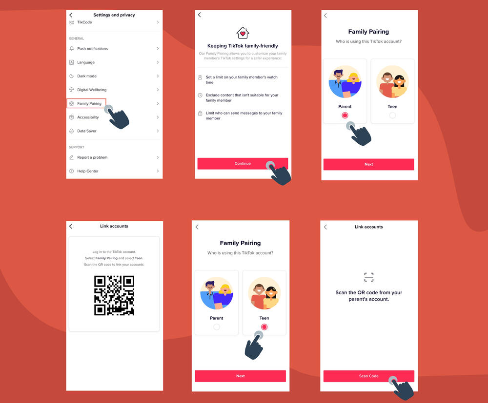 Jedna od novina uvedena ove godine u pogledu sigurnosti korištenja TikToka je “Family Pairing” opcija. U okviru nje možeš postaviti vremenska ograničenja, zabraniti neprikladan sadržaj i određivati ko može slati poruke djetetu - sve sa svog mobilnog telefona.