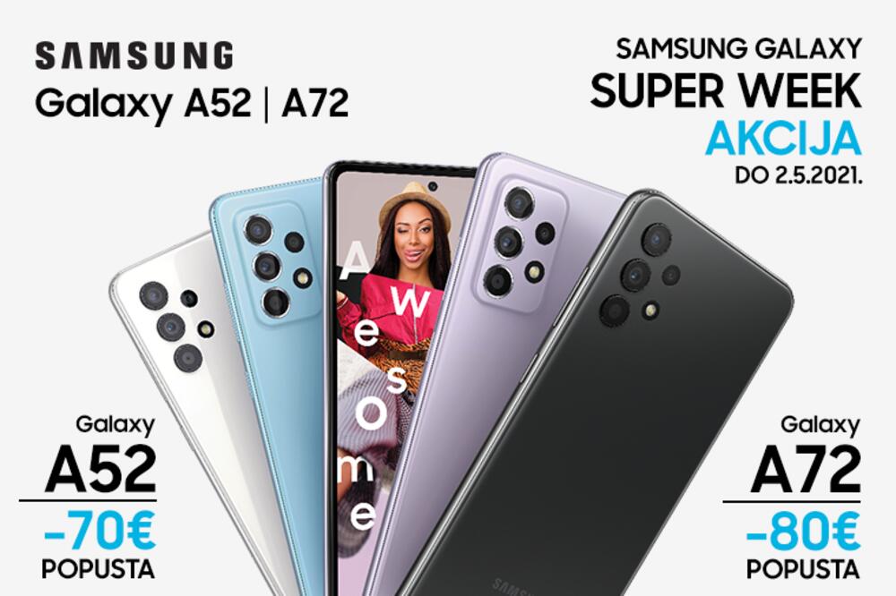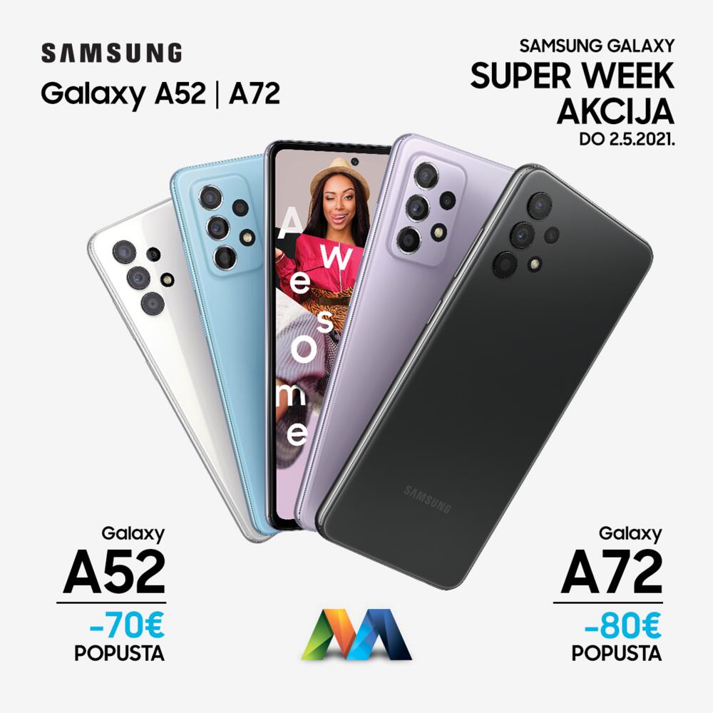 U periodu od 26.4. do 02.05.2021. godine na www.multicom.me/samsung biće organizovana prva Samsung Galaxy Super week akcija tokom koje će korisnici moći da po povoljnim cijenama kupe sledeće modele Galaxy telefona: