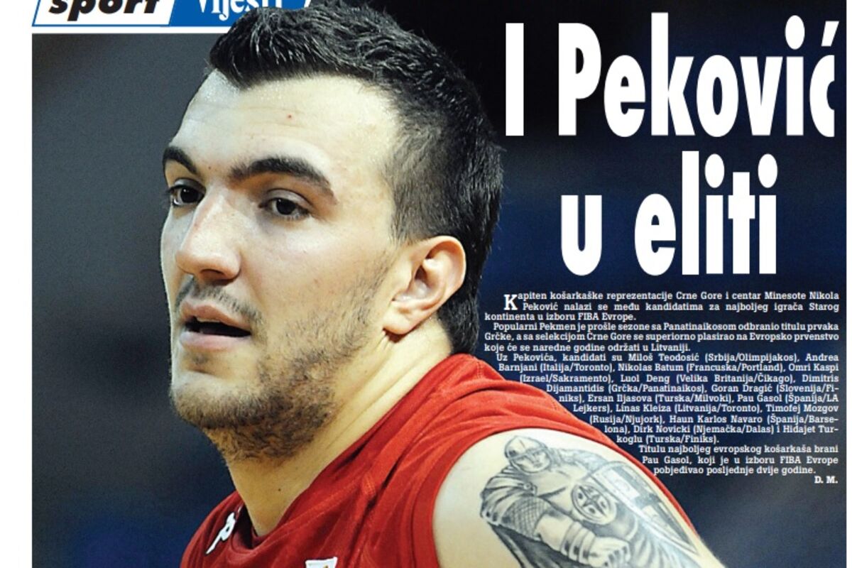 Kapiten košarkaške reprezentacije Crne Gore i centar Minesote Nikola Peković nalazi se među kandidatima za najboljeg igrača Starog kontinenta u izboru FIBA Evrope.