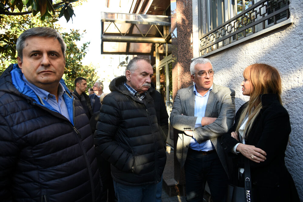 Ispred suda su i poslanici, članovi i pristalice Demokratskog fronta. Čuju se povici podrške Nebojši Medojeviću.