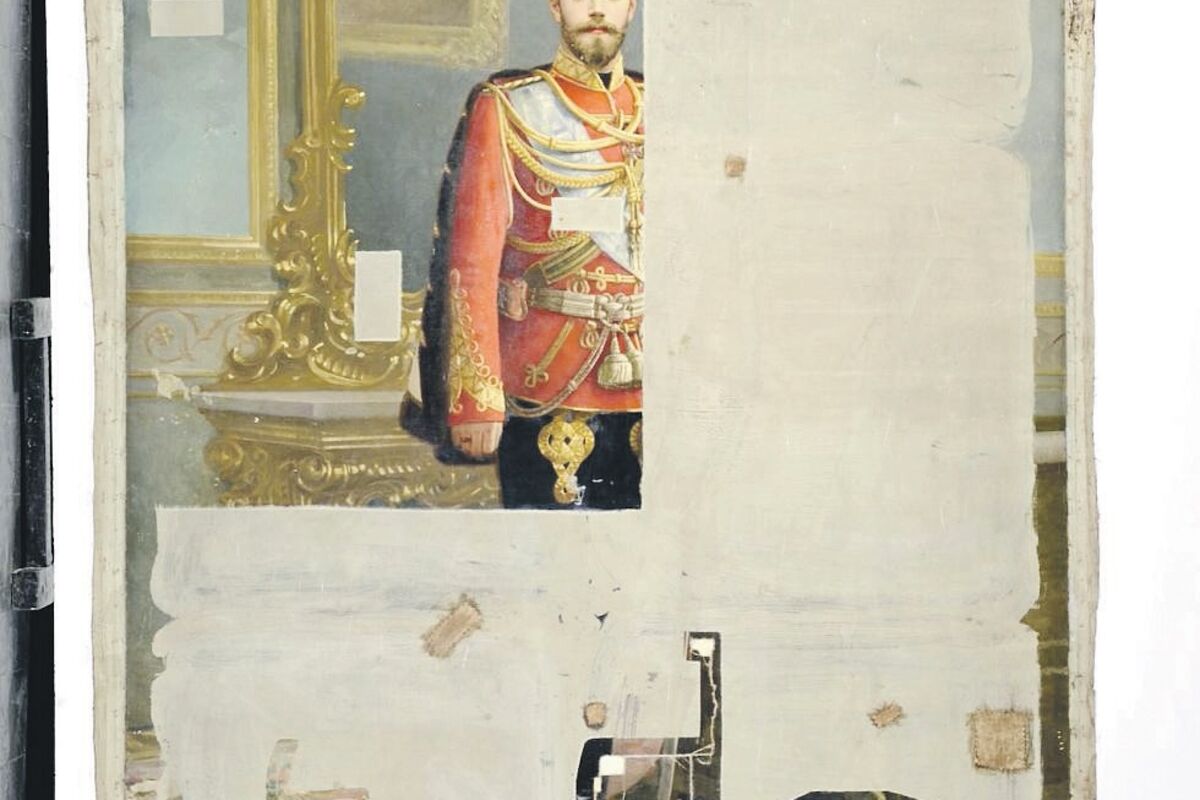 Sa druge strane platna sovjetskog umjetnika Vladislava Izmajloviča na kome je u punoj veličini naslikan vođa Oktobarske revolucije Vladimir Lenjin, ispod sloja boje koja se rastvara u vodi tokom restauracije je otkriven portret cara Nikolaja II.