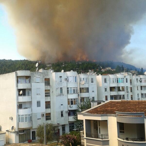 Ulcinj je od podne obavijen gustim dimom, miris paljevine osjeća se na sve strane dok vjetar rasipa pepeo po kućama i ulicama.