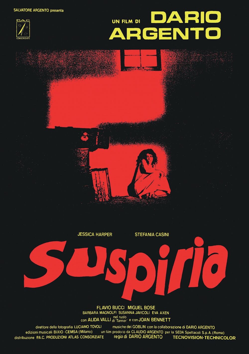 Suspiria, iako je ’na površini’ upečatljivi barokni vizuelni spektakl (suštinski, radi se istorijski o posljednjem vjerodostojnom Tehnikolor filmu), podjednaku pažnju poklanja zvuku, pri čemu se ne misli samo na ingeniozni soundtrack Goblina. Naime, već na špici filma se odigrava presudni impuls koji predodređuje formu filma: muški glas (u italijanskoj verziji on pripada samom Argentu) saopštava osnovne podatke o Suzy, odakle je došla i gdje je stigla, čime se bavi. Vrijeme, mjesto, identitet: sve ono što je neophodno za izgrađivanje tečne naracije. Malo kasnije, na samom saundtraku se čuje riječ koja unaprijed otkriva agens koji stoji iza nadolazećeg užasa: ’Witch’!