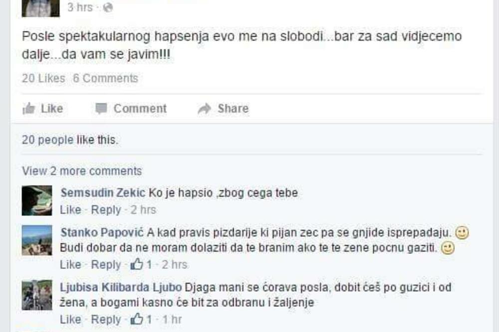Prijetio direktorici TV Vijesti, pa se hvalio na Fejsbuku da je pušten