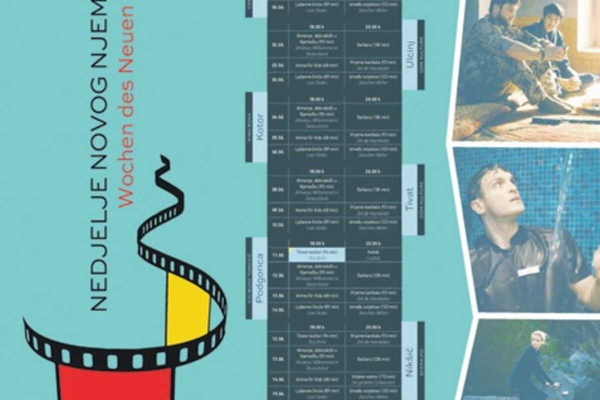 U okviru "Nedjelje novog njemačkog filma“ od 12. do 14. juna u organizaciji Ambasade Savezne Republike Njemačke i Kulturno - informativnog centra “Budo Tomović“ biće prikazani filmovi novije njemačke kinematografije. Ulaz za sve projekcije je besplatan.