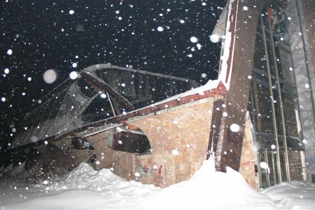 Preostali dio krova hale sportova u Beranama urušio se večeras oko 21 i 30 h.
