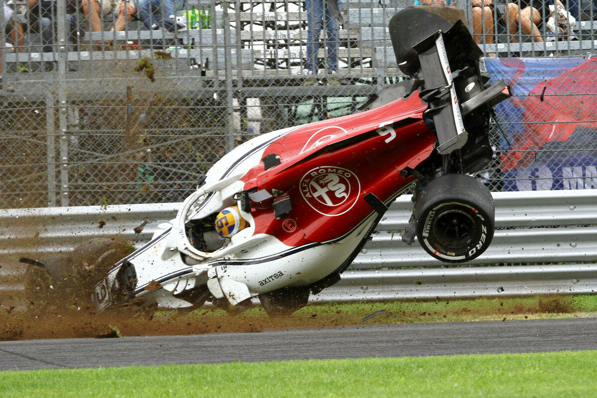 Vozač Zaubera Markus Erikson letio je u svom bolidu kroz vazduh na startu prvog nezvaničnog treninga trke za Veliku nagradu Italije u Monci, ali je, srećom, prošao bez posljedice.