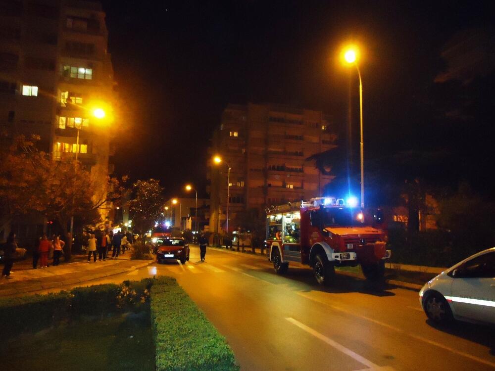 Dok oni nisu stigli, policija je za saobraćaj blokirala dio Ulice Druge dalmatinske brigade i dio Ulice Luke Tomanovića, kao i sve prilaze zgradi koja je bila okružena sa tri protivpožarna vozila Službe zaštite i spašavanja.