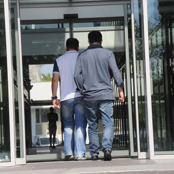 Jovanović (lijevo) i Subotić ulaze oko 13h kod Popovića; Foto: Luka Zeković