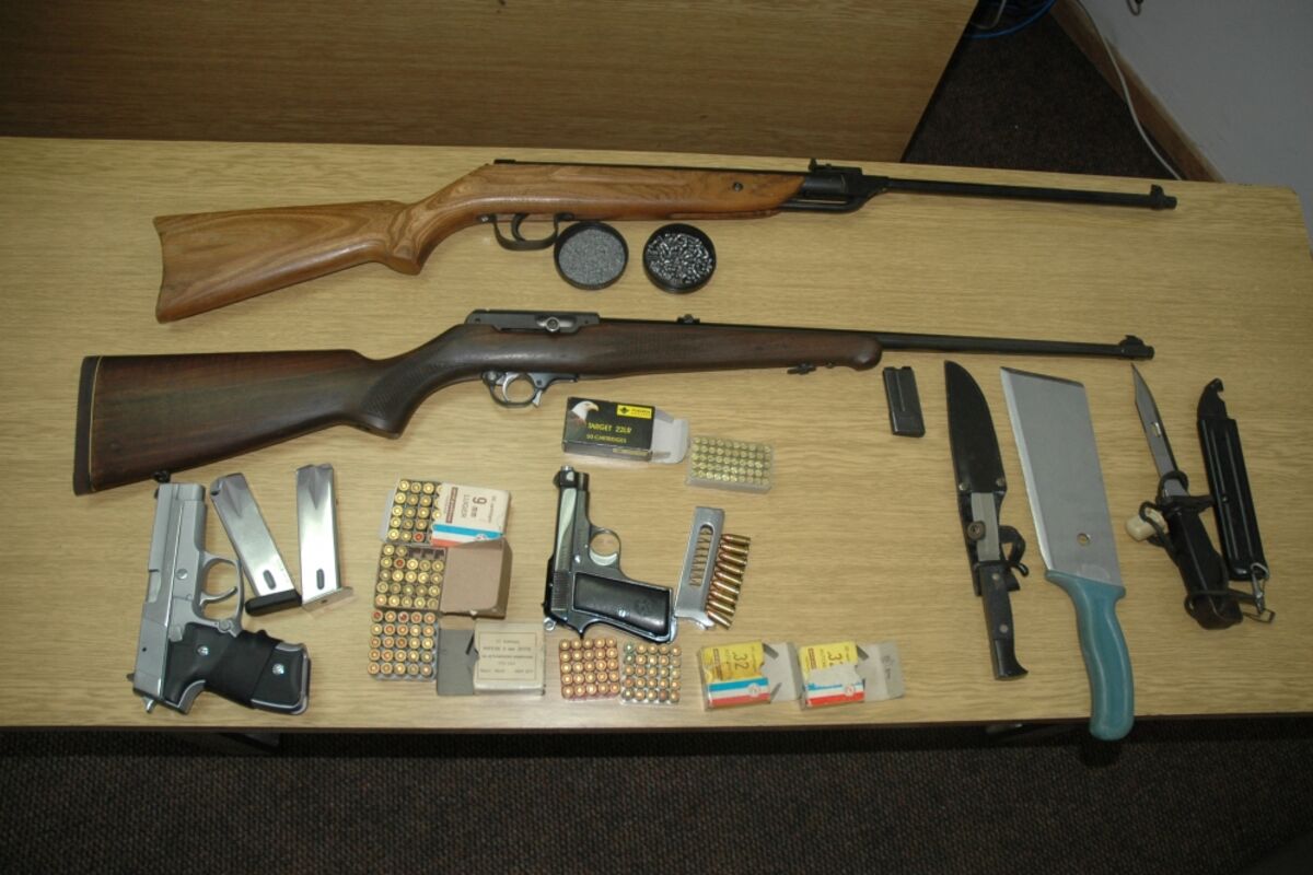 Pregledom torbe koja se nalazila na zadnjem sjedištu vozila ispod garderobe pronađen je pištolj marke "bereta" kalibra 7,65 mm sa okvirom i 59 komada municije istog kalibra, jedan lovački nož i jedna satara.