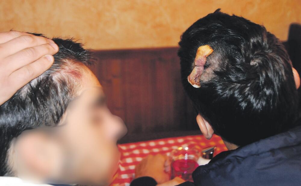 Milačić sa tuferom na glavi, a maloljetni S.B. sa modricom od pendreka na čelu, tvrde da nijesu pravili nerede ni prije utakmice, a ni po dolasku na stadion “Gorštaka”.