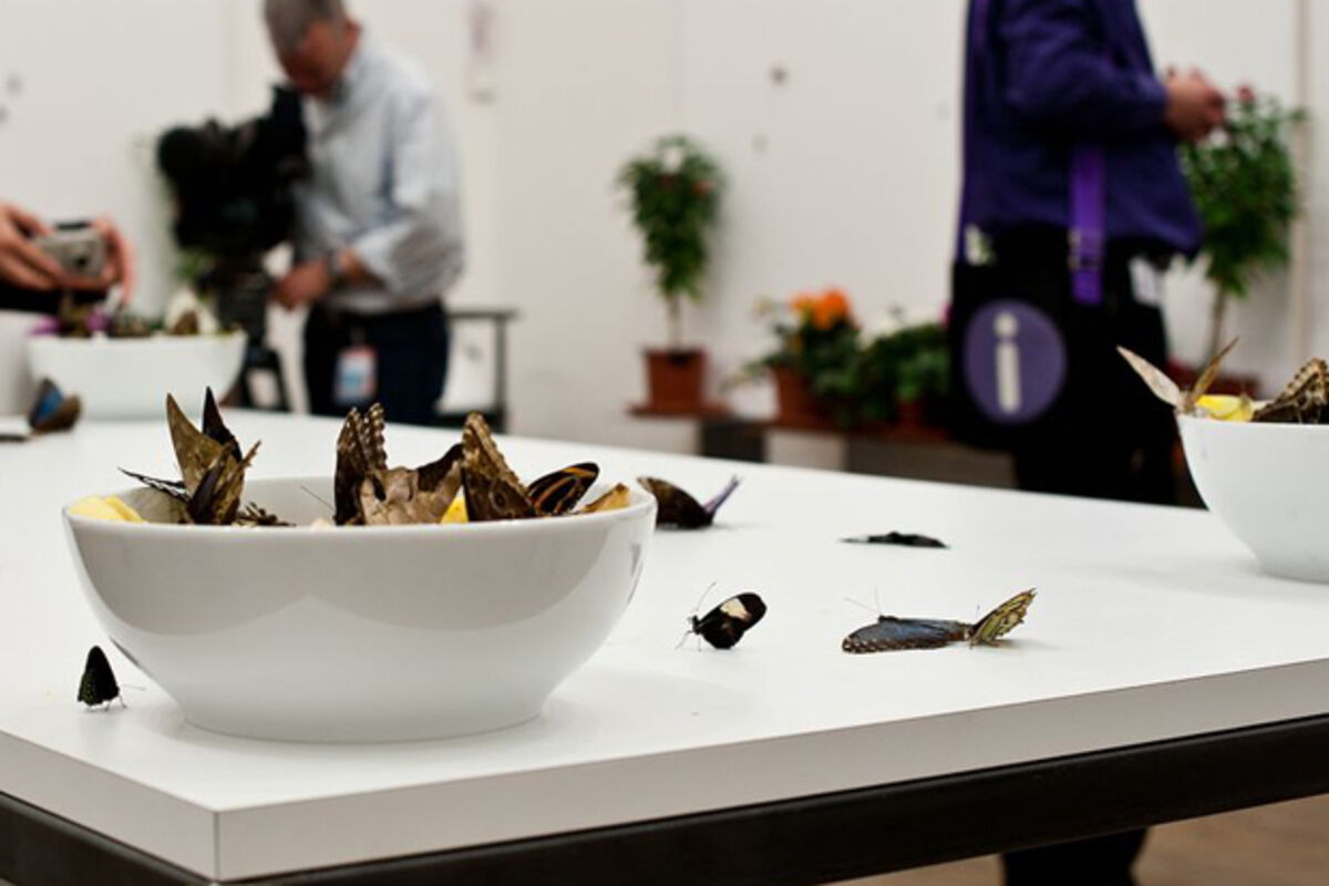 Britanski umjetnik Demijen Hirst, čija je šestomjesečna retrospektiva u Tejt Modern galeriji u Londonu privukla gotovo pola miliona posjetilaca i tako postala najposjećenija solo izložba u istoriji te galerije, izazvala je i burne reakcije udruženja za zaštitu životinja nakon što je objavljeno da je više od 9.000 leptira uginulo za vrijeme postavke.