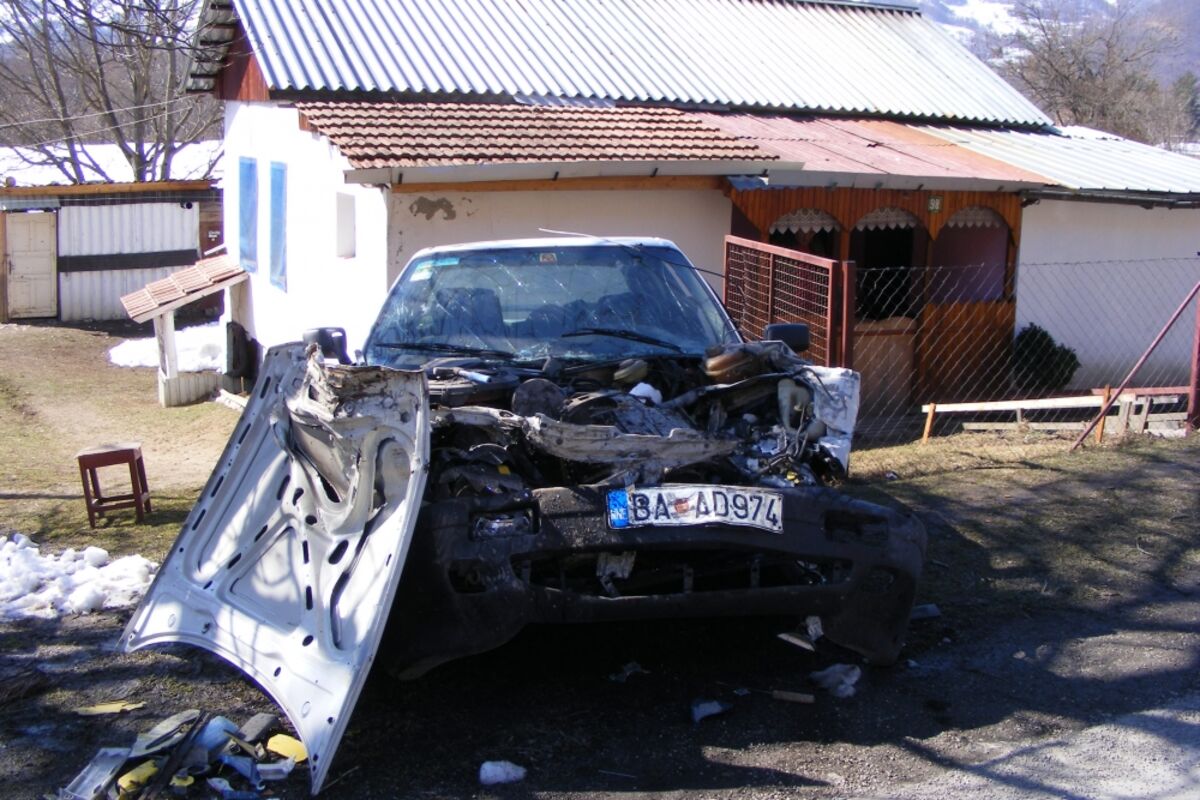 Uslijed silnog udara audi je sa velikom materijalnom štetom završio u obližnjem dvorištu.