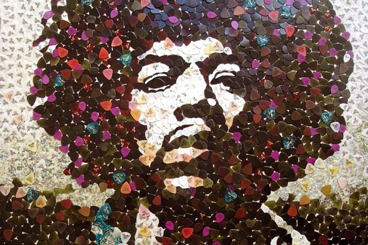 Portret legendarnog gitariste Džimija Hendriksa, izrađen u mozaiku od preko 5.000 raznobojnih trzalica marke “Fender”, biće uskoro stavljen na aukciju u Londonu.