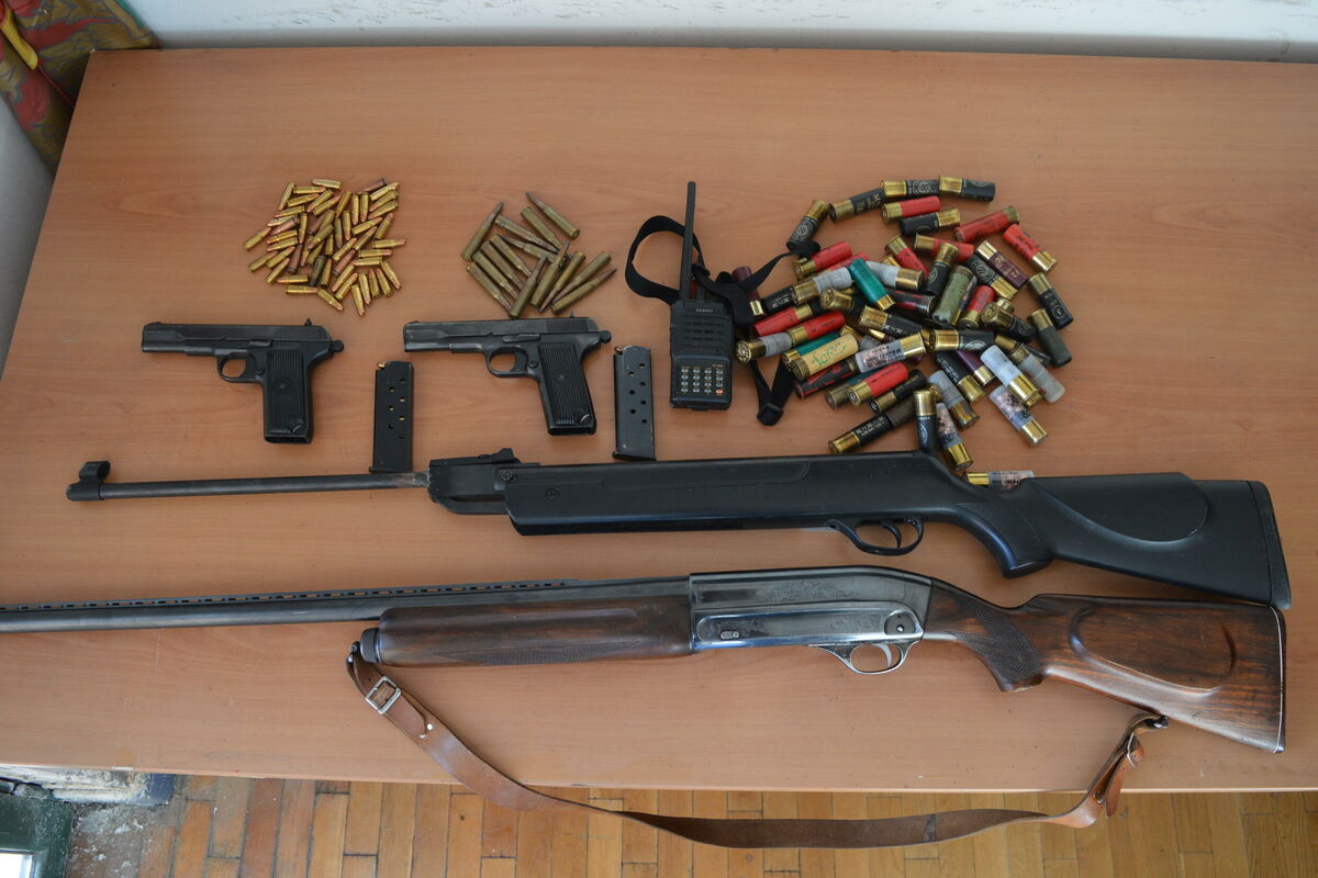 "Izvršen je pretres stana i drugih prostorija koje koristi Č.V. (35) iz Cetinja. Tom prilikom policajci su pronašli i oduzeli: pištolj marke "CZ M-57" kalibra 7,62 mm sa okvirom i četiri metka istog kalibra, pištolj marke "CZ M-57" kalibra 7,62 mm sa okvirom i sedam metaka istog kalibra, lovačku pušku marke "MC- 21automat", vazdušnu pušku marke "XTSAN" model 90, 14 metaka kalibra 7,57 R, 52 metka kalibra 7,62 mm – pištoljski, 60 metaka kalibra 12 mm – lovačkih i ručnu radio vezu marke "XAESU"", navodi se u saopštenju Uprave policije.