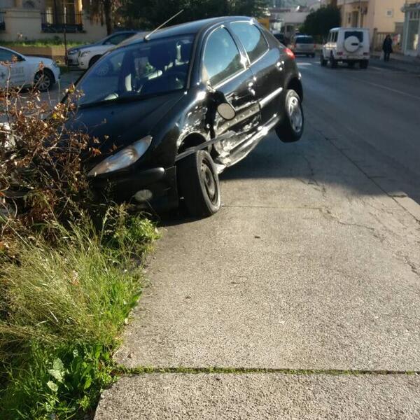 Automobil praktično visi, i prijeti da se prevrne na brod koji je uskladišten na parkingu.