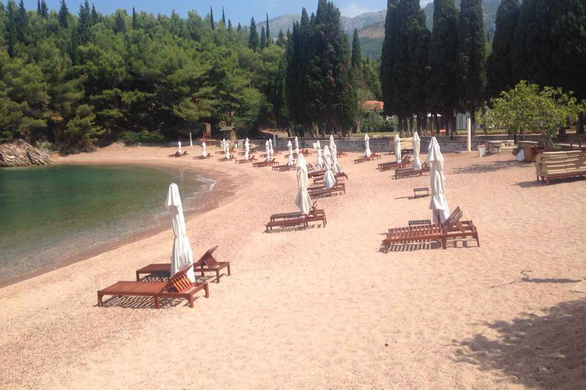 Na pitanje koliko košta ulaz na plažu, obezbjeđenje nam je ljubazno odgovorilo da je cijena 25 eura po osobi, ali da na plaži ima samo 30 ležaljki i onog momenta kada su sve popunjenje, ulaz se blokira dok ne bude oslobođeno neko mjesto.
