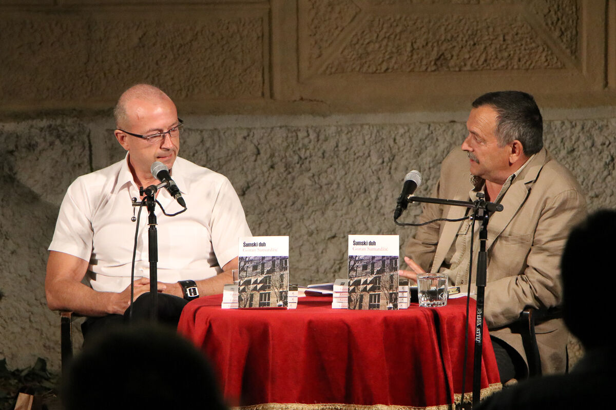 Kako je veče bilo zamišljeno kao promocija romana "Šumski duh", autor je sa moderatorom razgovarao upravo o temama i idejnim slojevima prisutnim u djelu.