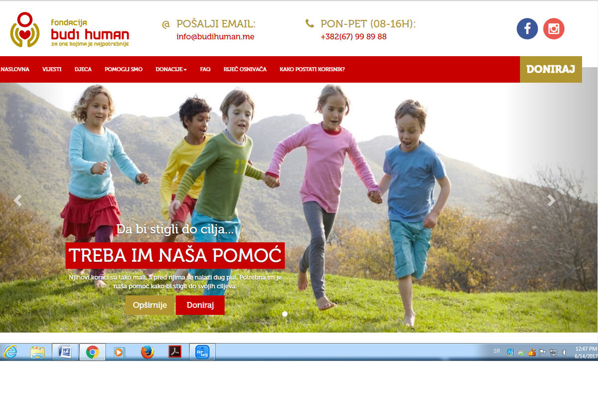 Prije nekoliko dana Fondacija "Budi human" pokrenula je web sajt - Za one kojima je najpotrebnije. Sada građani imaju mogućnost da u svakom trenutku na brz i jednostavan način doniraju novac za liječenje djece u inostranstvu. Portal je napravljen tako da u svakom trenutku možete da pratite kako teče akcija pomoći i koliko je novca prikupljeno. Sa nama u studiju u četvrtak, 15. juna, izvršni direktor Fondacije, Goran Jovanović.