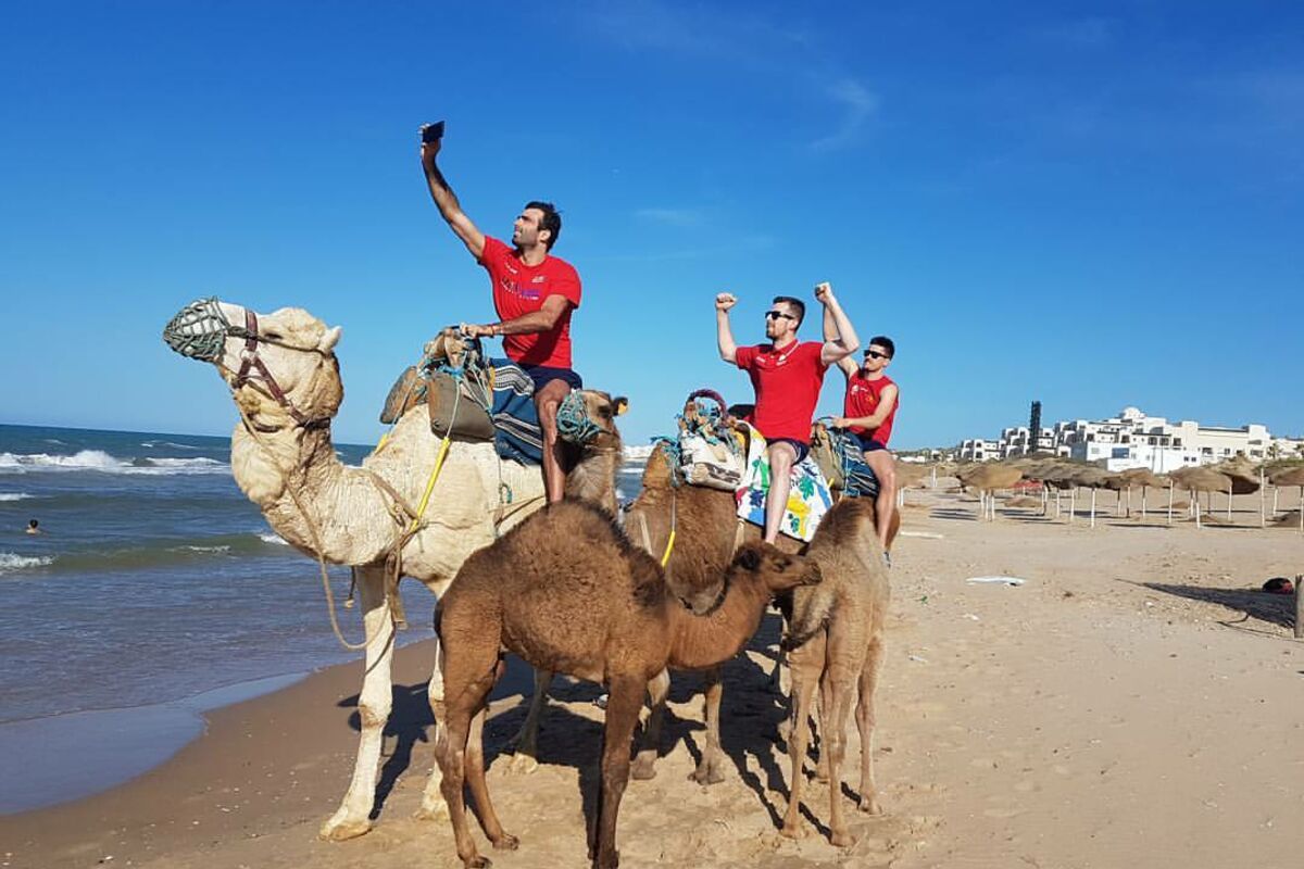 U pauzi priprema za naredna tri meča, kao što se vidi na slici objavljenoj na Fejsbuku, naši reprezentativci koriste priliku da se malo opuste i razonode, pa su, tako, Aleksandar Minić, Ivan Ječmenica i Simo Dabović isprobali jahanje kamila...