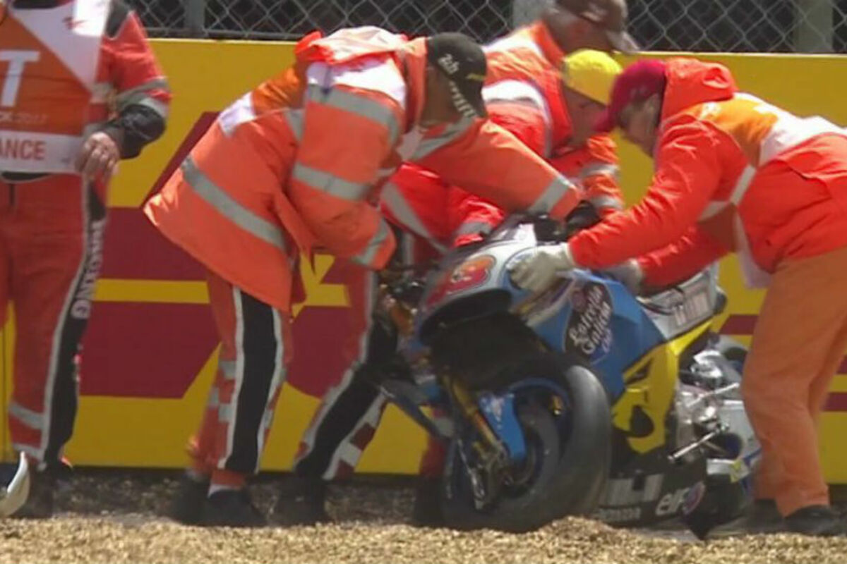 On je potpuno izgubio kontrolu nad motorom, dok je izlazio iz krivine, produžio naprijed i završio na tlu.
