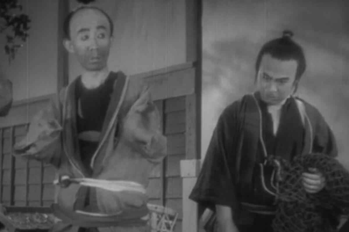 U filmu Ito Daisukea Tange Sazen: Daippen (Tange Sazen: Prvi dio, 1933), naslovni junak bez jednog oka i jedne ruke je oblikovan kao standardizovan chanbara (filmovi sa mačevima) junak koji se sveti nakon što je izdan. U Yamanakinoj, pak verziji, Tange (Okochi Denjiro) ni na koji način ne odgovara stereotipnom samurajskom heroju, štoviše, on je već neka vrsta dobronamjerne parodije budući da je izdržavan od strane svoje ljubavnice.