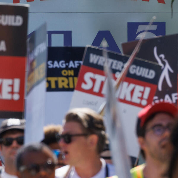 Holivudski glumci pridružili su se filmskim i televizijskim scenaristima na protestima 14. jula koji su primorali filmske studije u Sjedinjenim Američkim Državama (SAD) da prekinu produkciju.