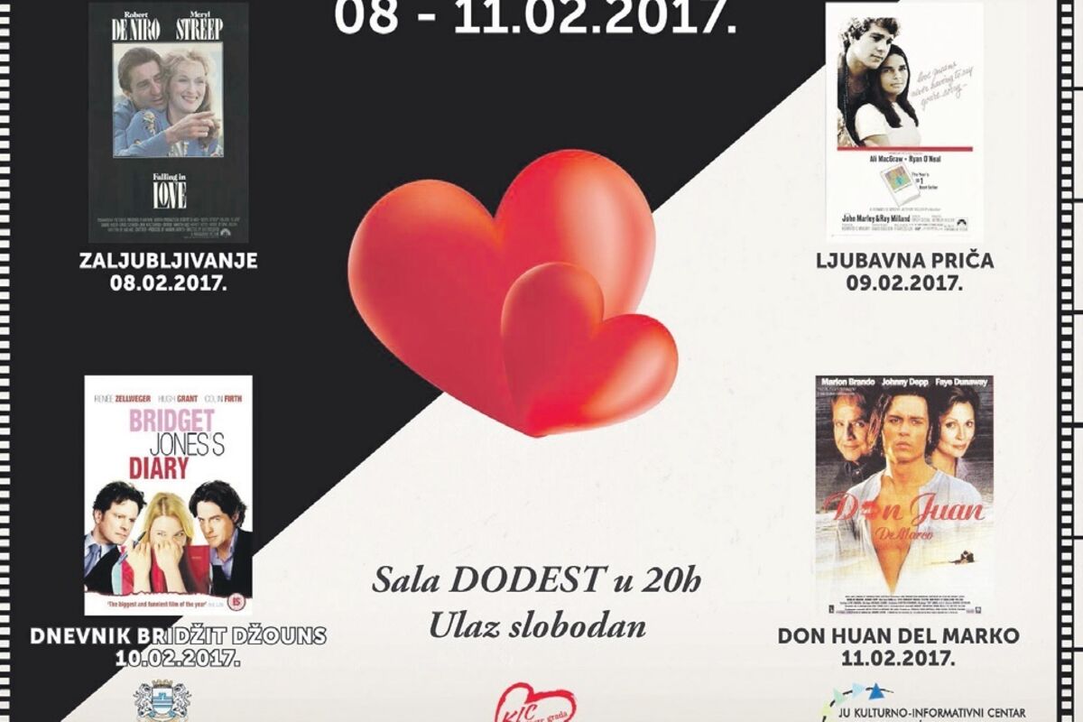Filmski program Kulturno-informativnog centra “Budo Tomović” u znaku je filmskog ciklusa “ Ljubav na filmu”, koji će u periodu od osmog do 11. februara obilježiti neka od najromantičnijih ostvarenja sa ljubavnom tematikom.