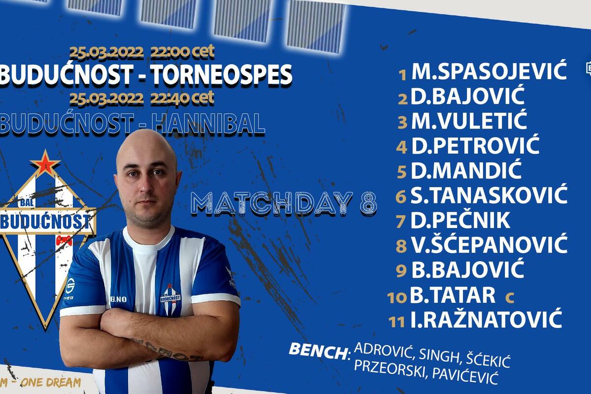 Budućnost će nastupiti u sastavu: Marko Spasojević, Marko Vuletić, Dalibor Petrović, Danilo Bajović, Drago Mandić, Stefan Tanasković, Domen Pečnik, Vučeta Šćepanović, Ivan Ražnatović, Bojan Tatar i Boris Bajović.