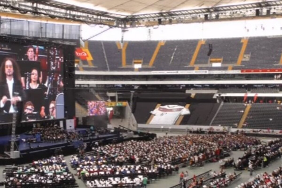 Više od 7.500 muzičara okupilo se u subotu uveče na fudbalskom stadionu u Frankfurtu za poseban nastup, koncert najvećeg orkestra na svijetu, javila je danas njemačka agencija DPA.