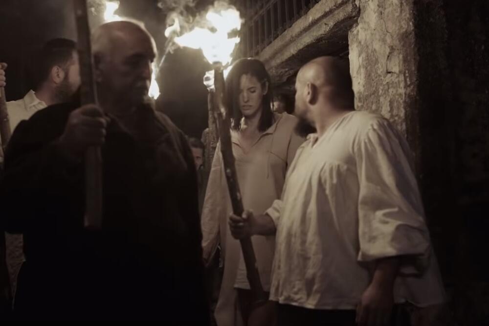 U spotu pjevačica igra vješticu koju seljani planiraju da spale na lomači.