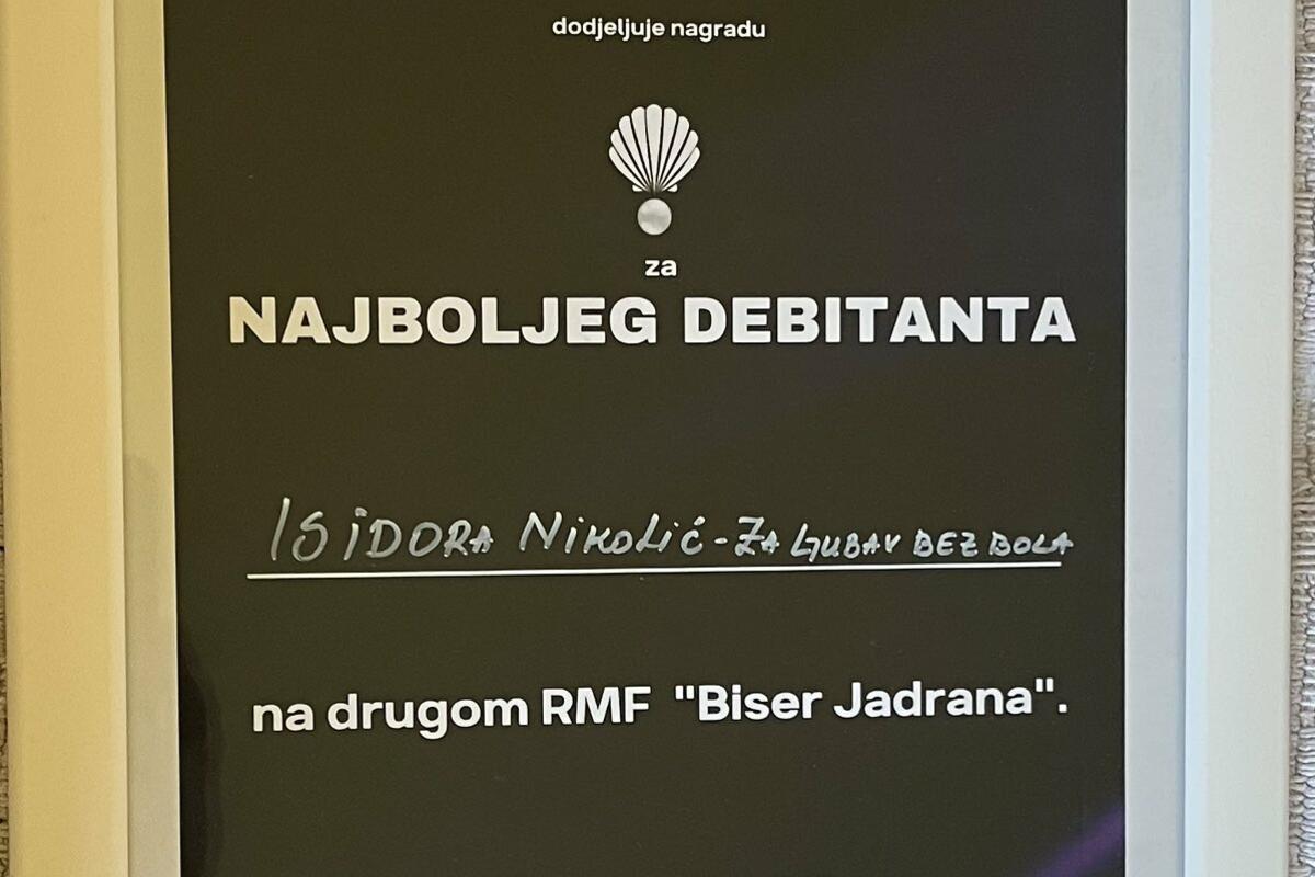 Mlada Kotoranka Isidora Nikolić, profesorica muzike, sinoć je na festivalu Biser Jadrana osvojila nagradu za najboljeg debitanta.