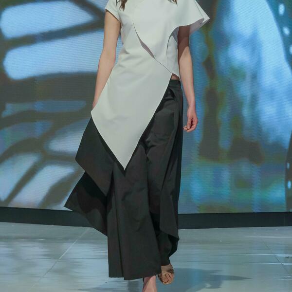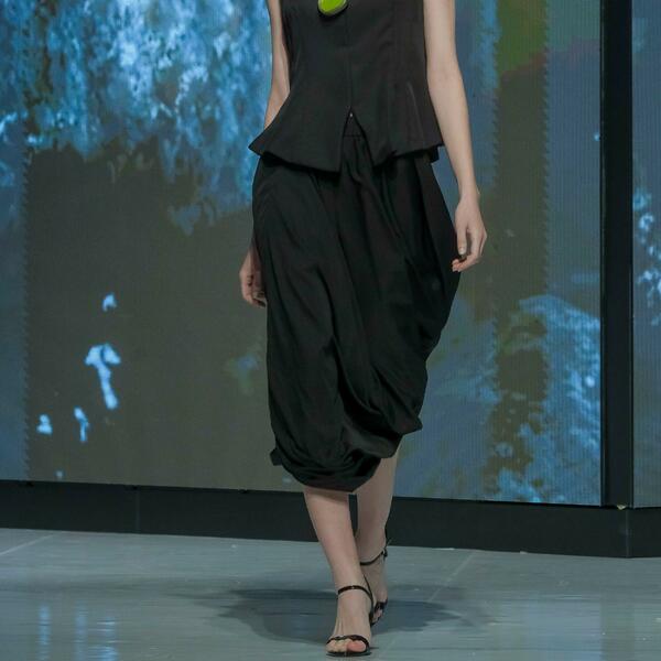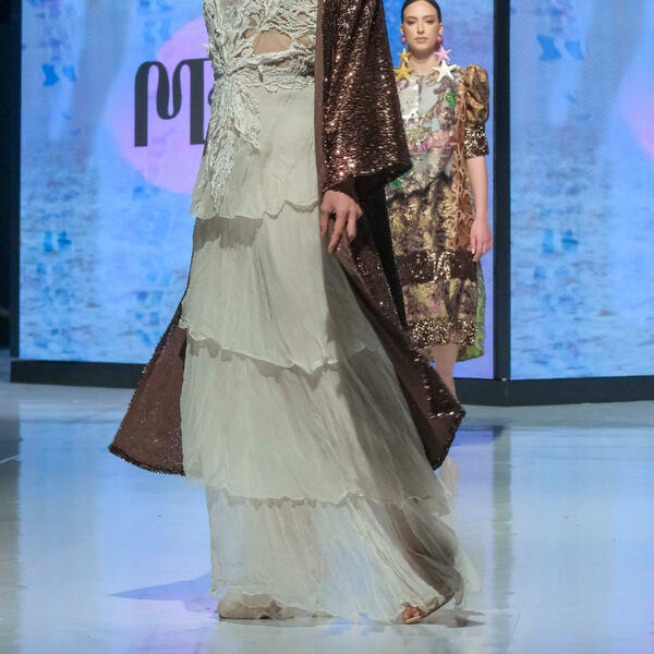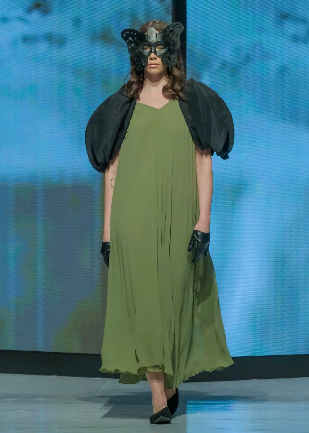Ana Vasiljević prikazala je deset modela iz kolekcije "Biomorph", a koji su, kako je objasnila u ranijem razgovoru za "Vijesti", inspirisani organskom filozofijom arhitekture Antonija Gaudija, i nastali povodom 100 godina od njegove smrti.