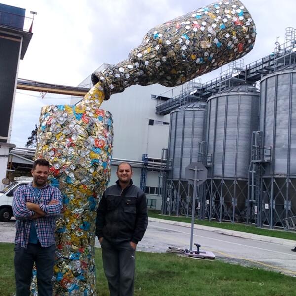 Da limenke dobiju “novi život” potrudili su se akademski umjetnici Nikola Simanić i Marko Petrović Njegoš, koji su juče u krugu Pivare postavili skulpturu.