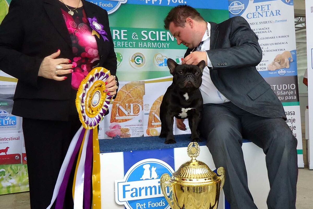 Francuski buldog CH Coco Vialatte Last Samurai, vlasnika Jamanake Kazukija iz Japana, izabran je za najljepšeg psa međunarodne izložbe CACIB Bar 1, održane u sklopu dvodnevnog kinološkog Adriatik Kupa 2016 u Baru.