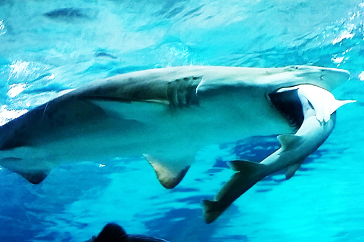 U Seulskom akvarijumu, ženka tigar ajkule, je na očigled svih posjetilaca akvarijuma pojela manju ajkulu (morski kučak), lagano je gutajući dio po dio.