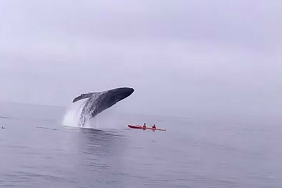 Prilikom skoka jedan kit je "zaronio" tačno preko kajaka, što je zabilježeno kamerom.