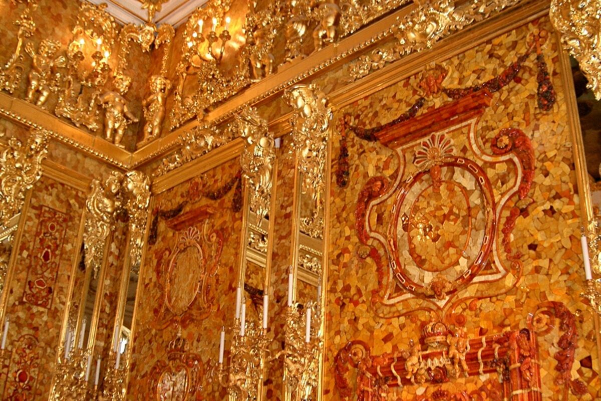 Zidovi sobe, od čistog ćilibara, bili su prije rata u palati Katarine Velike u Carskom selu kod Sankt Petersburga.