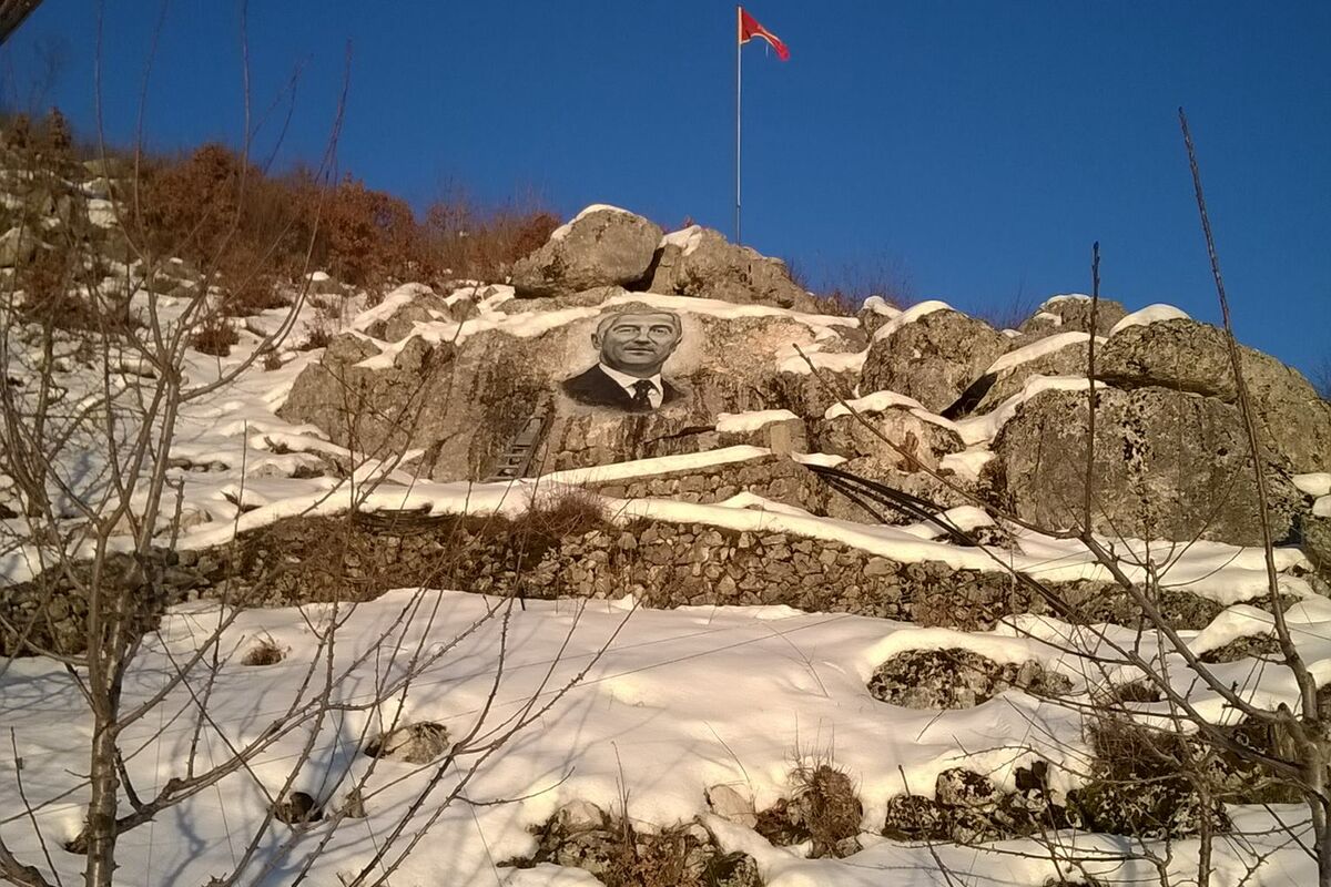 Iznad slike Đukanovića, na stijeni koja se nalazi na nadmorskoj visini od oko 1.050 metara, vijori se crnogorska zastava.