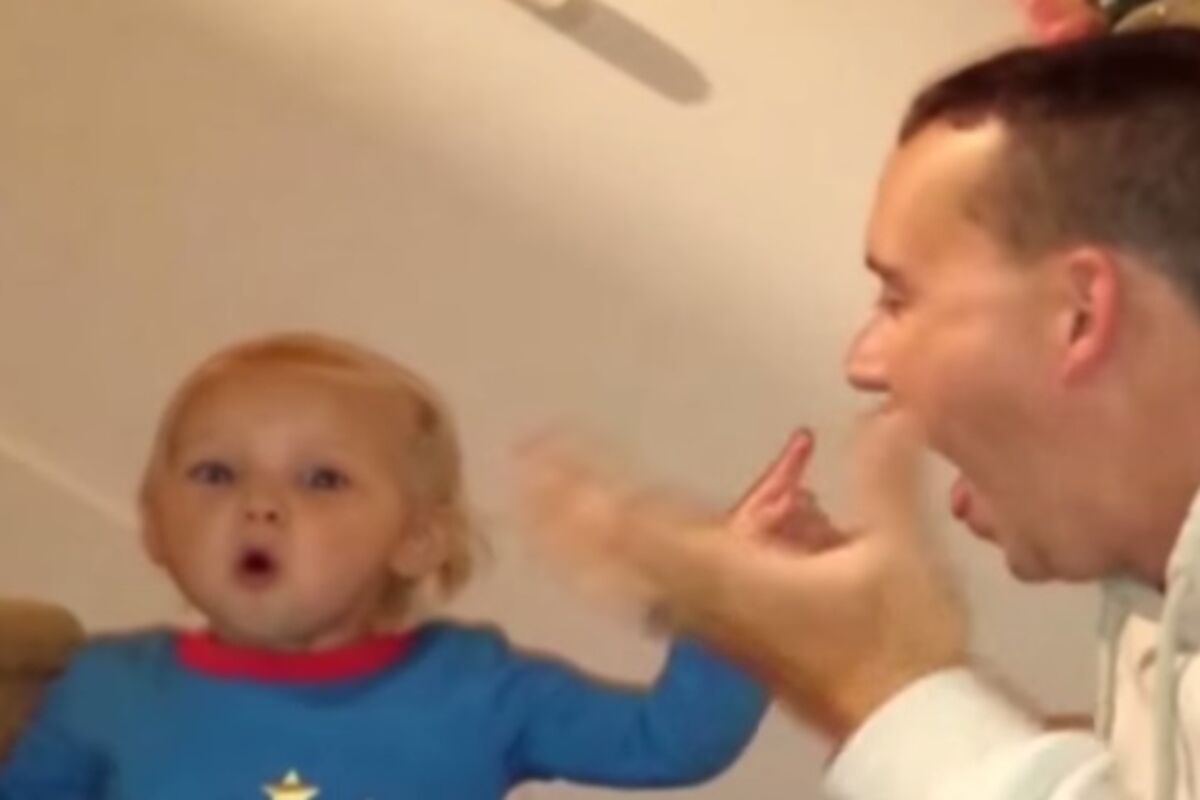 Pogledajte izraze lica ovog djeteta dok mu otac izvodu mađioničarske trikove.