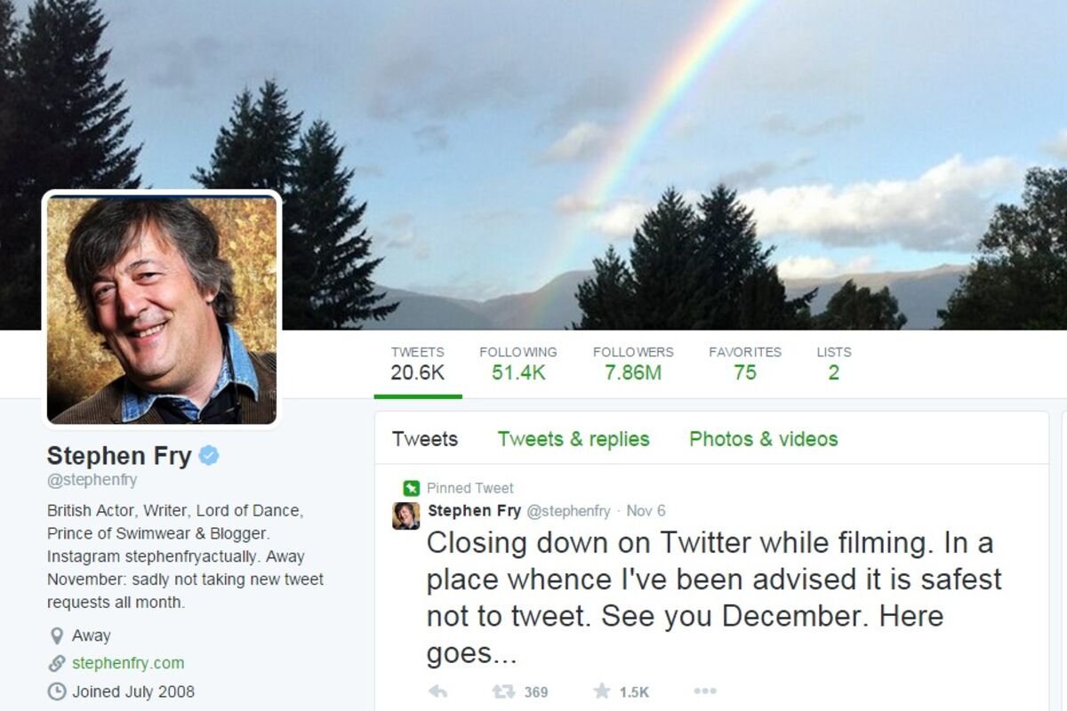 Engleski glumac Stiven Fraj jedna je od omiljenih ličnosti na Tvitera, ali će fanovi njegovih mudrih i duhovitih dosjetki biti razočarani saznanjem da je on odlučio da prestane sa korišćenjem drašvenih mreža.