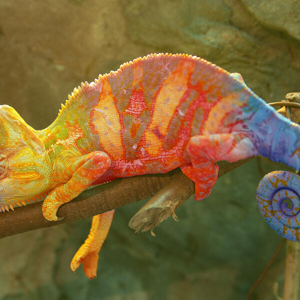 Umjesto toga, kameleon mijenja boje zbog fizičkih, psiholoških i emocionalnih promjena. Ako se osjećaju sitničavo, ljuto ili uplašeno, promijeniće boju koristeći svoje kromatofore. Boju mijenjaju i kako bi komunicirali na razne načine ili započeli borbu. Svijetlo i temperatura takođe igraju određenu ulogu u tome kakvu će boju kameleon poprimiti.