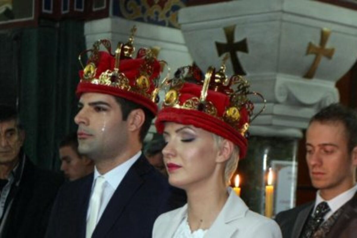 Mladenci su na vjenčanje stigli u bijeloj limuzini koju je vozio Uroš Savić, sin fudbalske legende Dušana Savića