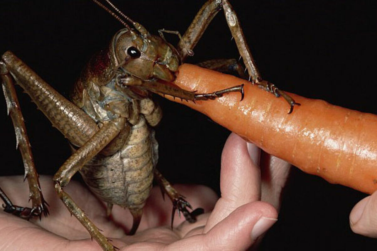 Insekt podsjeća na ogromnog skakavca, a pripada vrsti džinovskih veta (Weta) od kojih je, međutim, mnogo veći.
