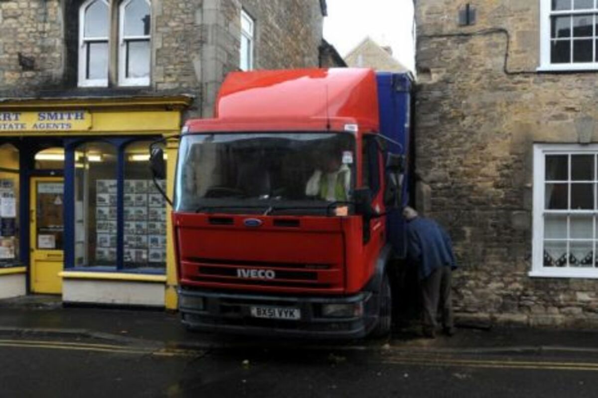 To je uspjelo jednom vozaču koji je trebalo da isporuči naručena bezalkoholna pića, ali kako je bio pospan, umoran od traženja parkinga, njegov kamion je ostao zaglavljen između kuće i agencije za nekretnine.