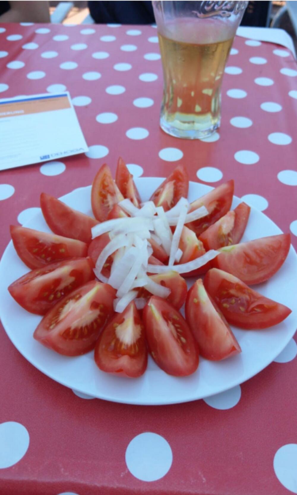 Paradajz izrezan na kriške i komadići luka u sredini posluženi su turisti koji je to uživanje platio šest eura.