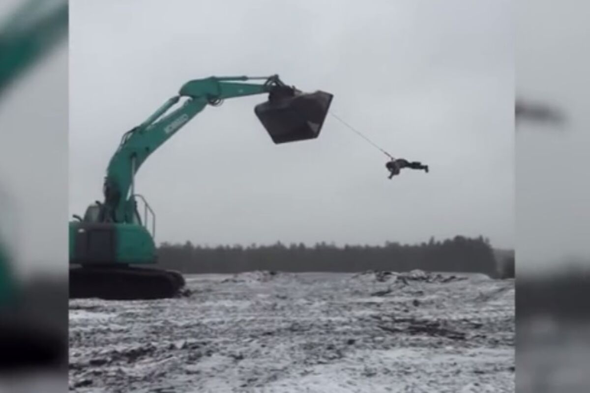 Jedan mladić došao je na ideju da ga prijatelji zakače za bager-kopač koji bi mu poslužio kao vrteška.
